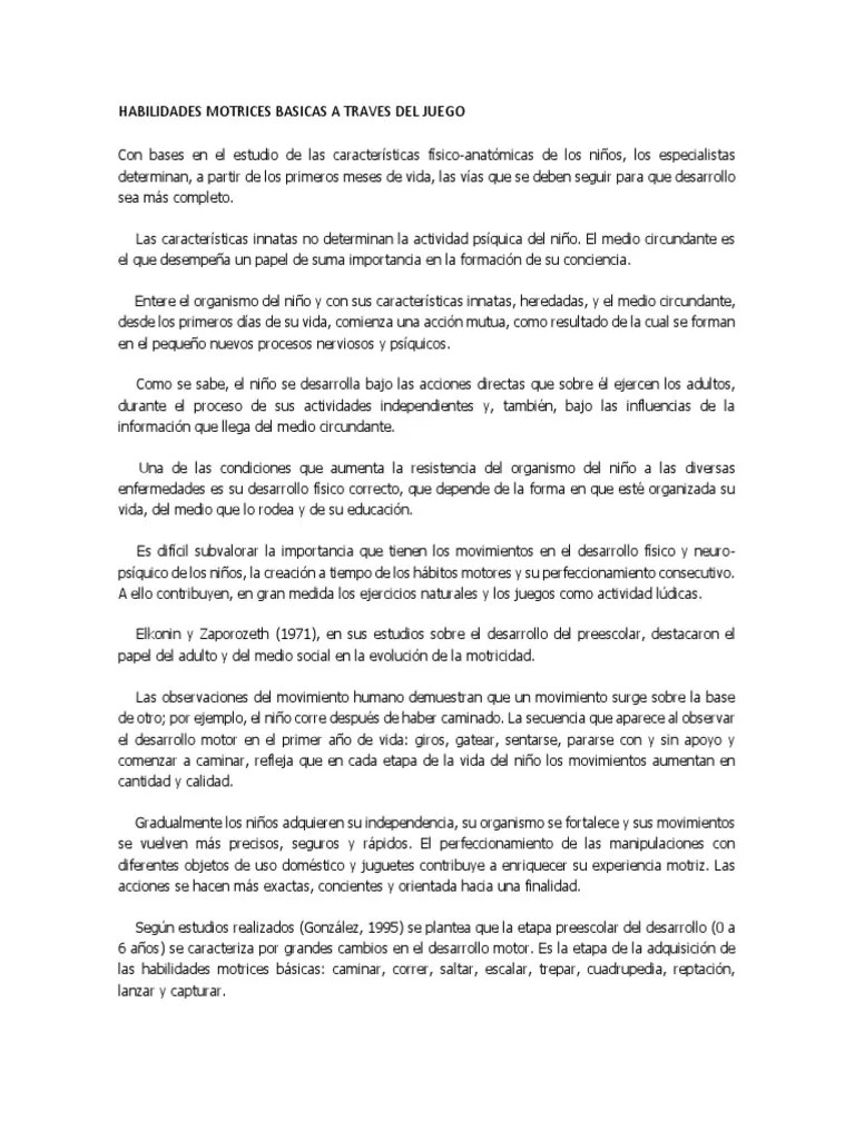 Las habilidades motoras básicas son aquellos movimientos que se presentan de manera natural en el hombre como correr, saltar, caminar, etc.
